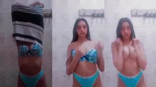 بنوتة قطقوطة زنبورها لسة محلوق طاظة في الحمام بتقلع ملط وهي هايجة اوي ساخنة نار